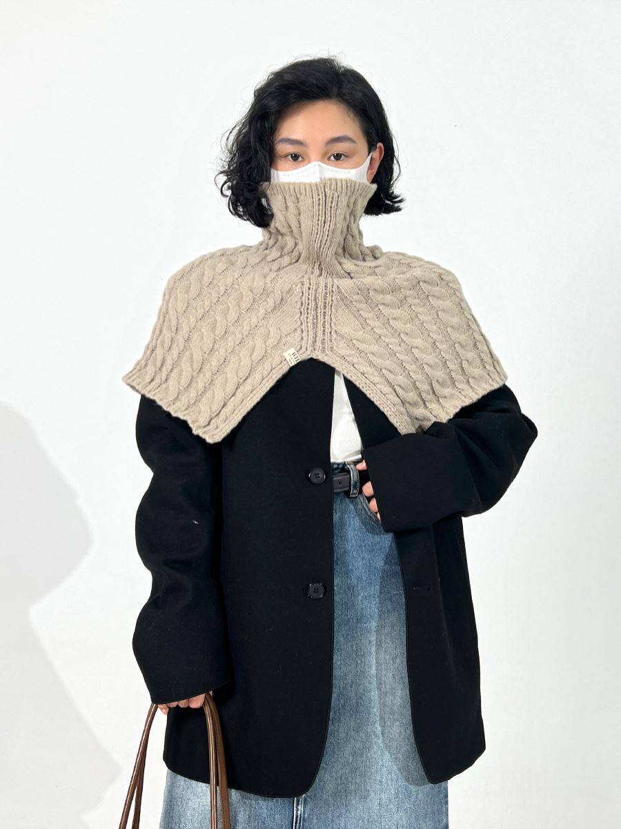 📚 中世纪斗篷披肩高领针织围脖配大衣百搭麻花套头开叉罩衫秋冬季女