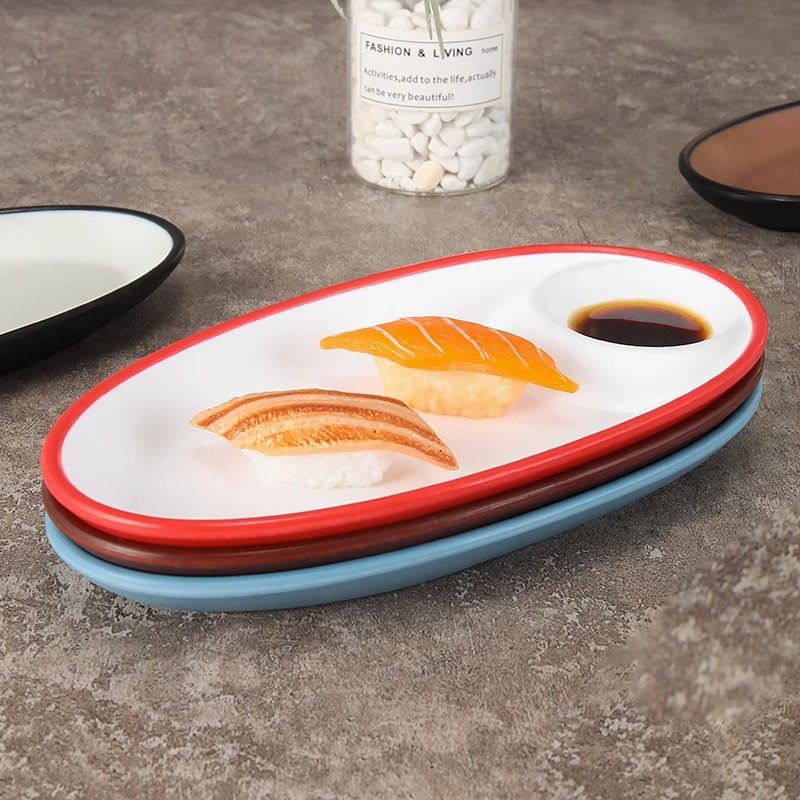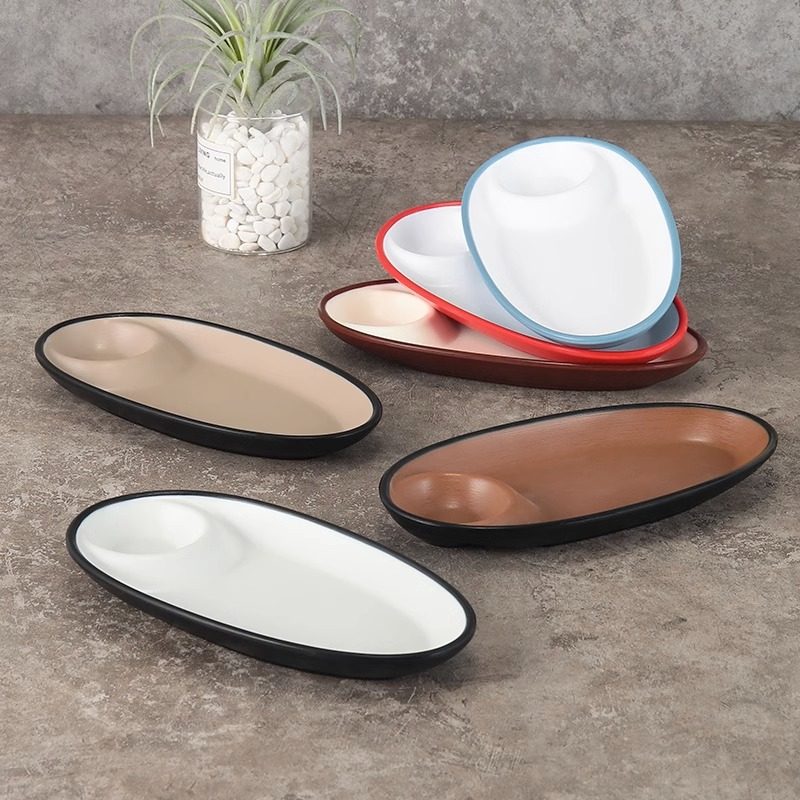 📚 密胺子母盘商用创意仿瓷塑料红糖糍粑小酥肉盘子饺子盘虾盘带醋碟