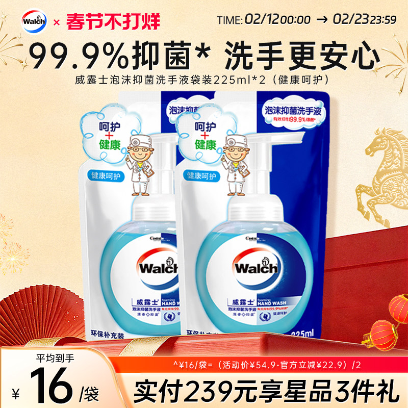 📚 【春节不打烊】威露士泡沫抑菌洗手液袋装225ml*2易冲洗儿童可用
