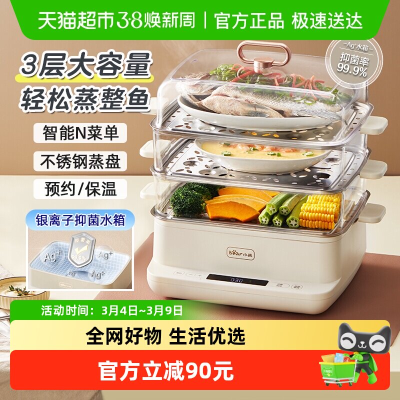 📚 小熊电蒸锅多功能家用预约定时保温煮蛋器烹饪机不锈钢多层电蒸笼