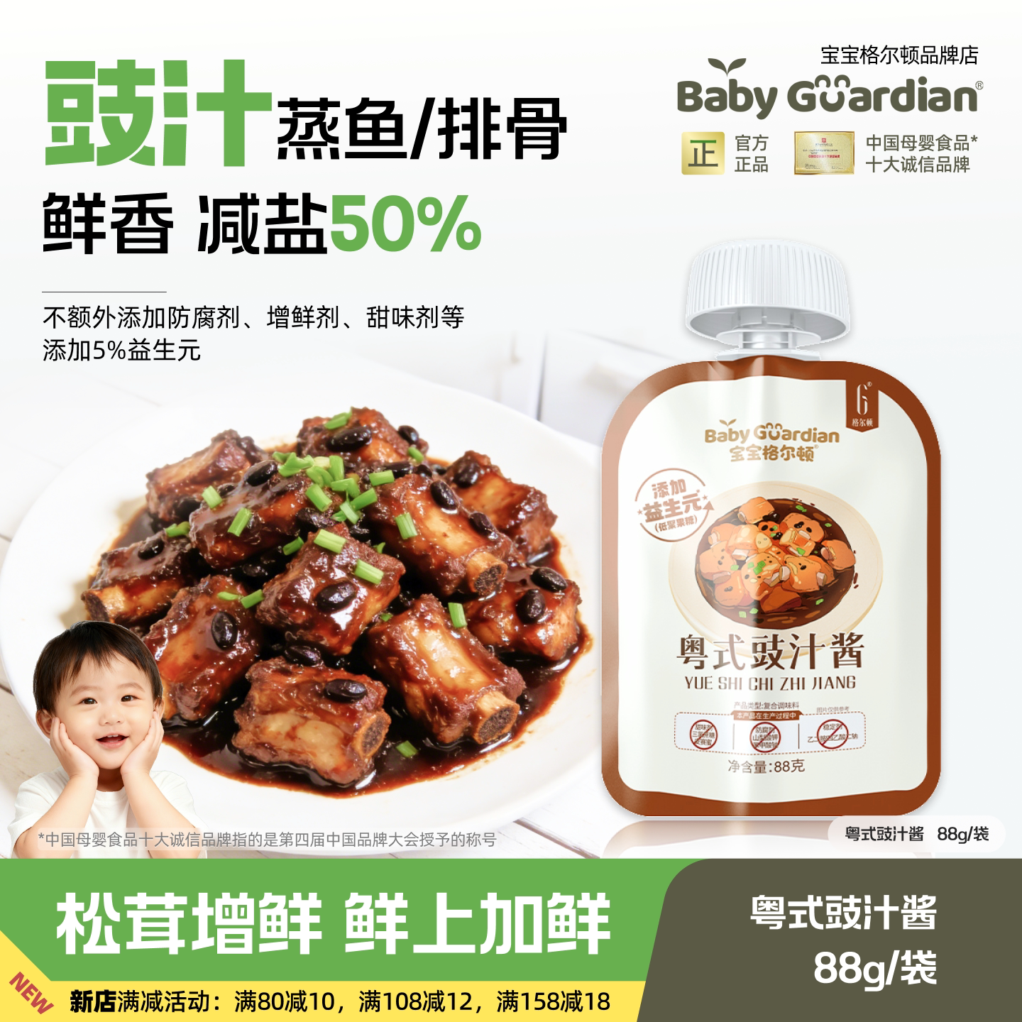 📚 宝宝格尔顿粤式豉汁酱减钠50%蒸排骨炒菜广式风味调味酱懒人调料