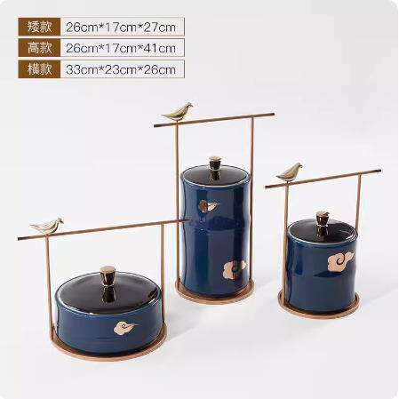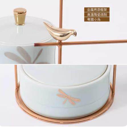 📚 轻奢新中式青绿色意古蜻蜓小鸟春铁艺瓷装饰品高端玄关YB-ZC828博