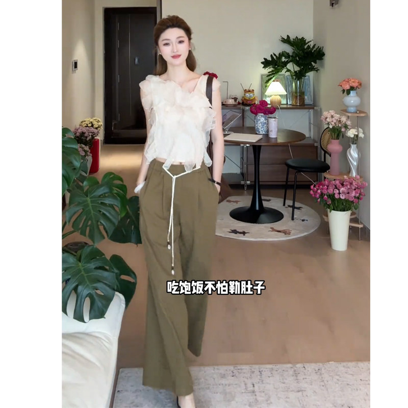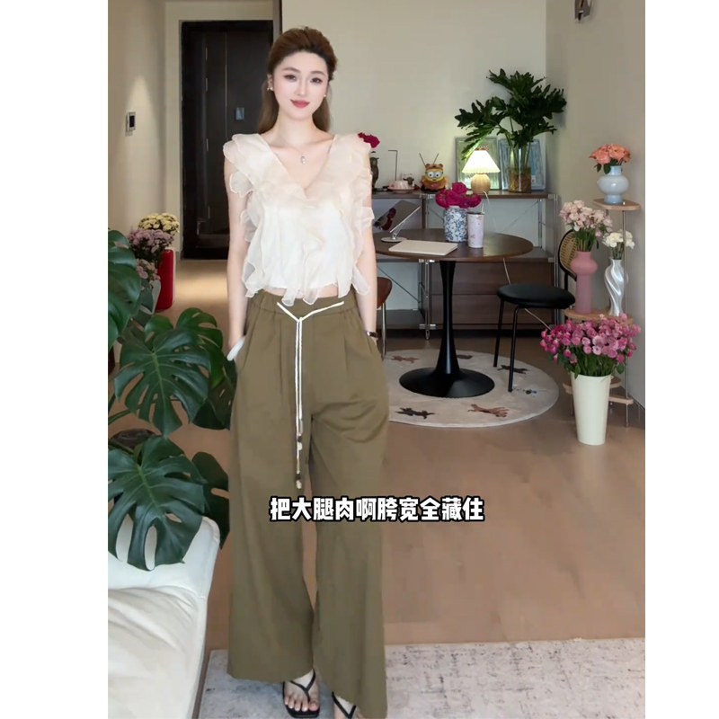 📚 向晚意 STUDIO 女装时尚仙气荷叶边上衣高腰简约阔腿休闲裤两件套