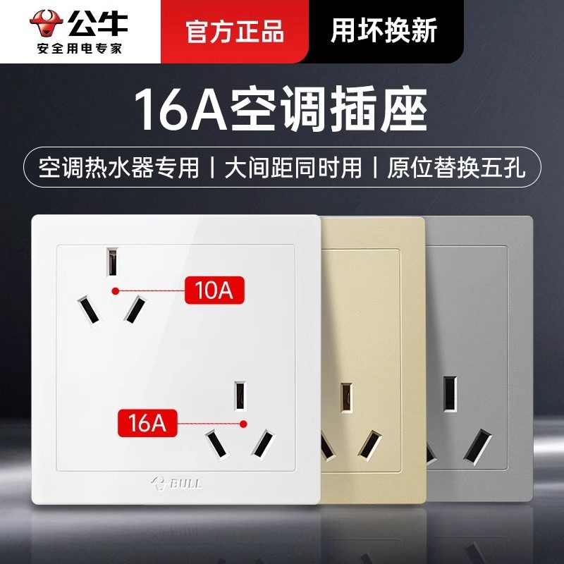 📚 公牛六孔插座86型家用无框10a暗装嵌入式双三孔16安大功率空调插