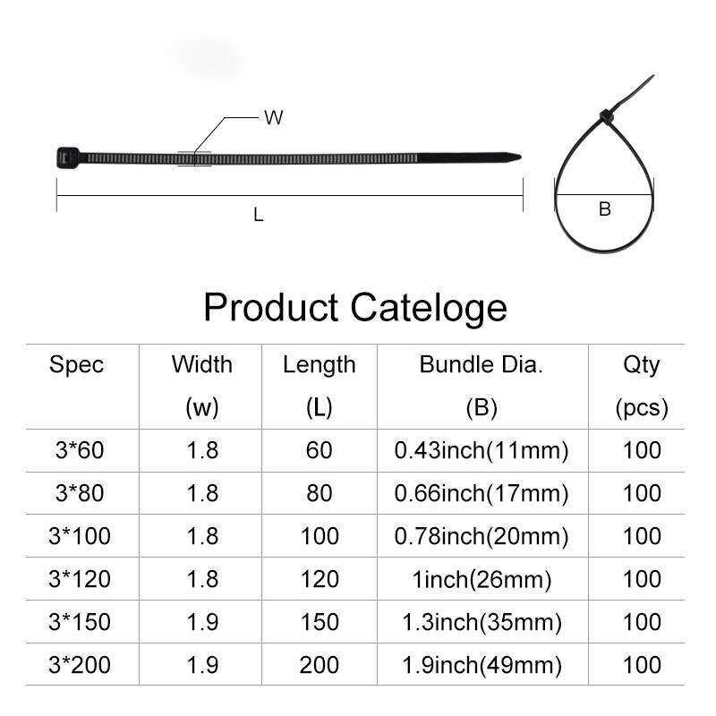 📚 Plastic nylon cable tie 100 PCS black 5X300 cable tie fixing