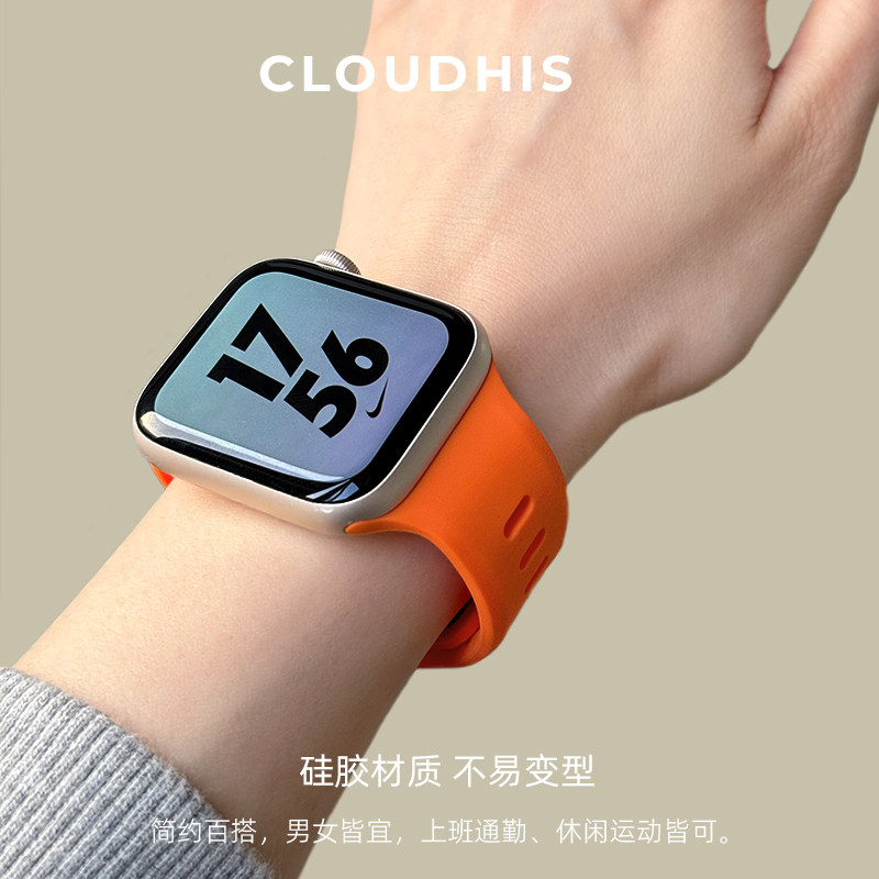 📚 CLOUDHIS适用AppleWatch Ultra表带液态硅胶新款苹果S10手表运动通风透气iwatch创意9高级感男女款夏季SE
