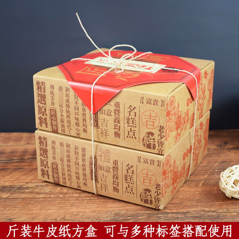 📚 复古牛皮纸盒老式点心包装盒中式糕点盒月饼桃酥重阳糕包装手提盒