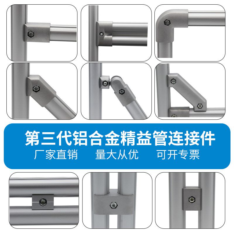 📚 28mm铝合金精益管第三代线棒配件空心圆形铝管型材接头连接件台车