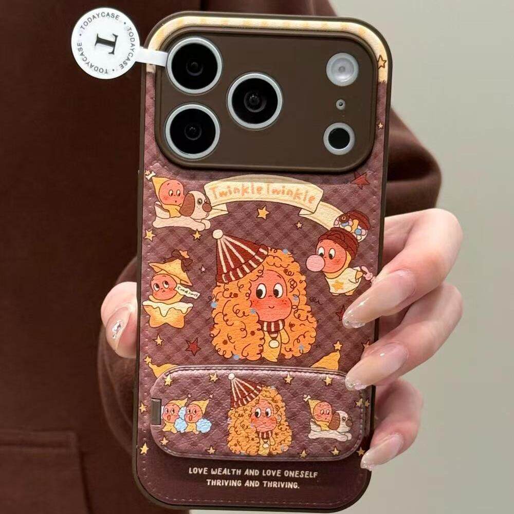 📚 棕色格纹卷发星星宝适用iPhone17promax手机壳15新款17pro网红女款13创意全包防摔16pro超好看17保护套