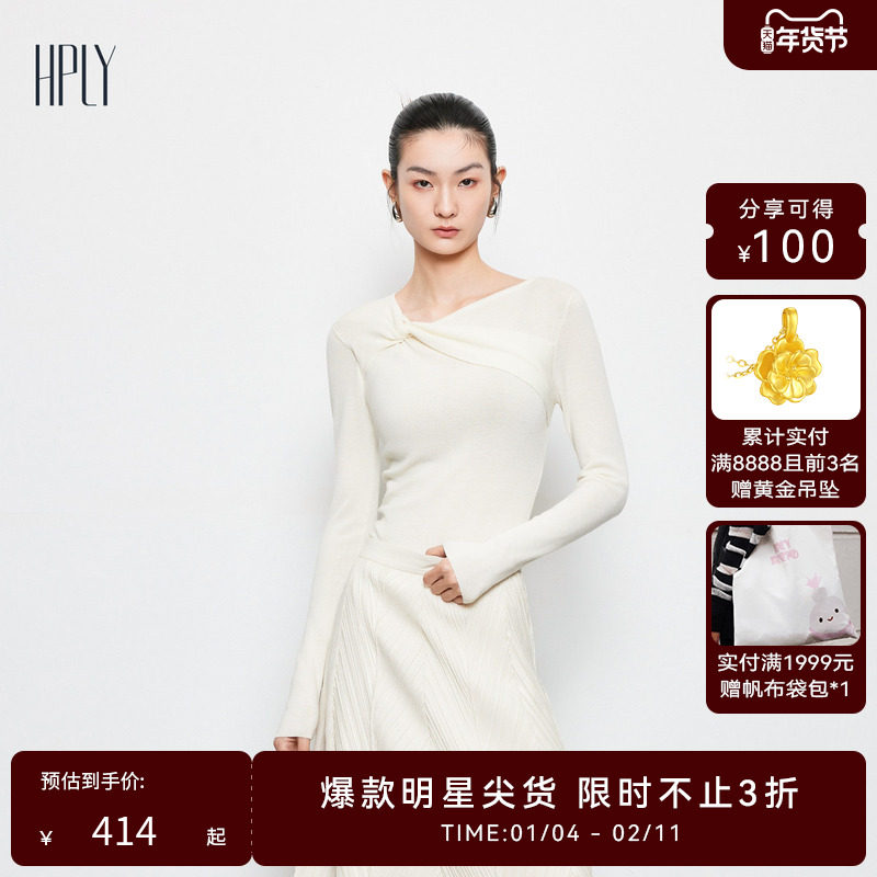 💥【商场同款】HPLY荷比俪春秋新款女扭结斜领女人味毛衣💖超值到手!券后价仅518!