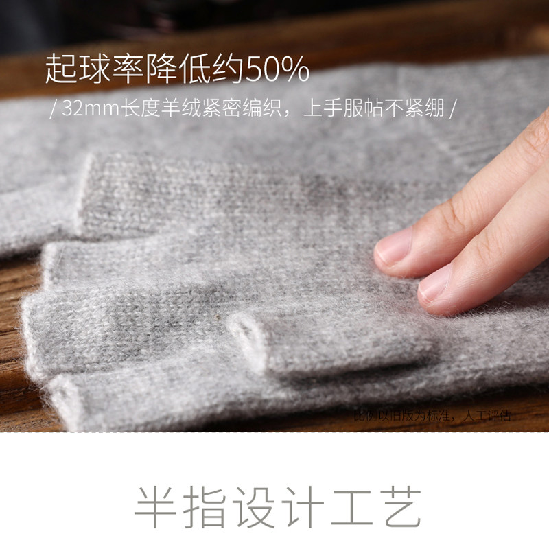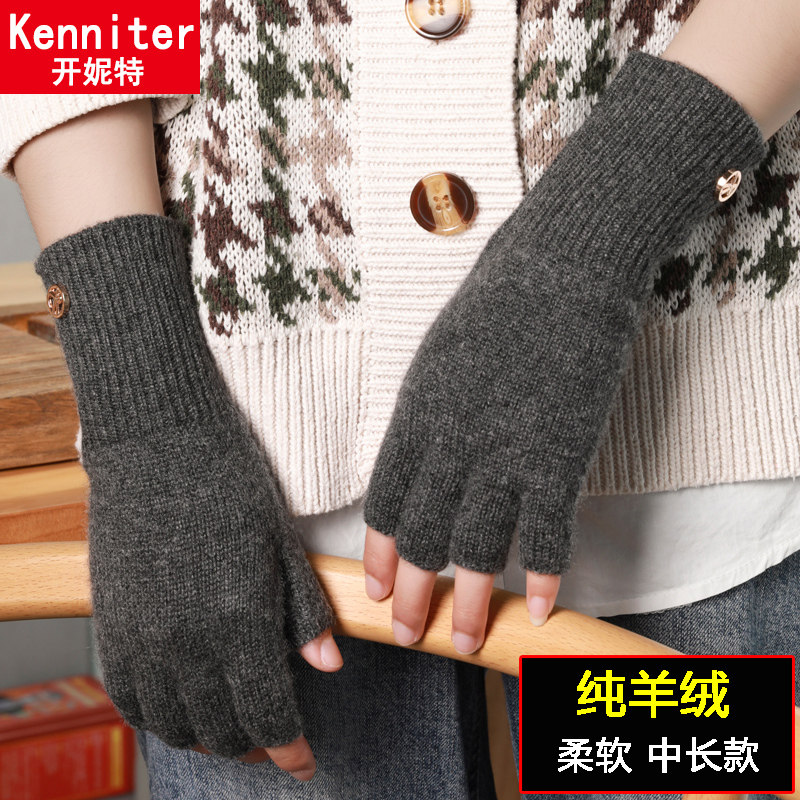 📚 纯羊绒露指手套冬天女半指保暖开车写字漏指羊毛半截冬季手套薄款