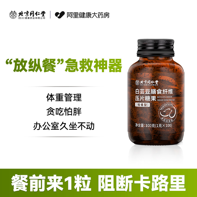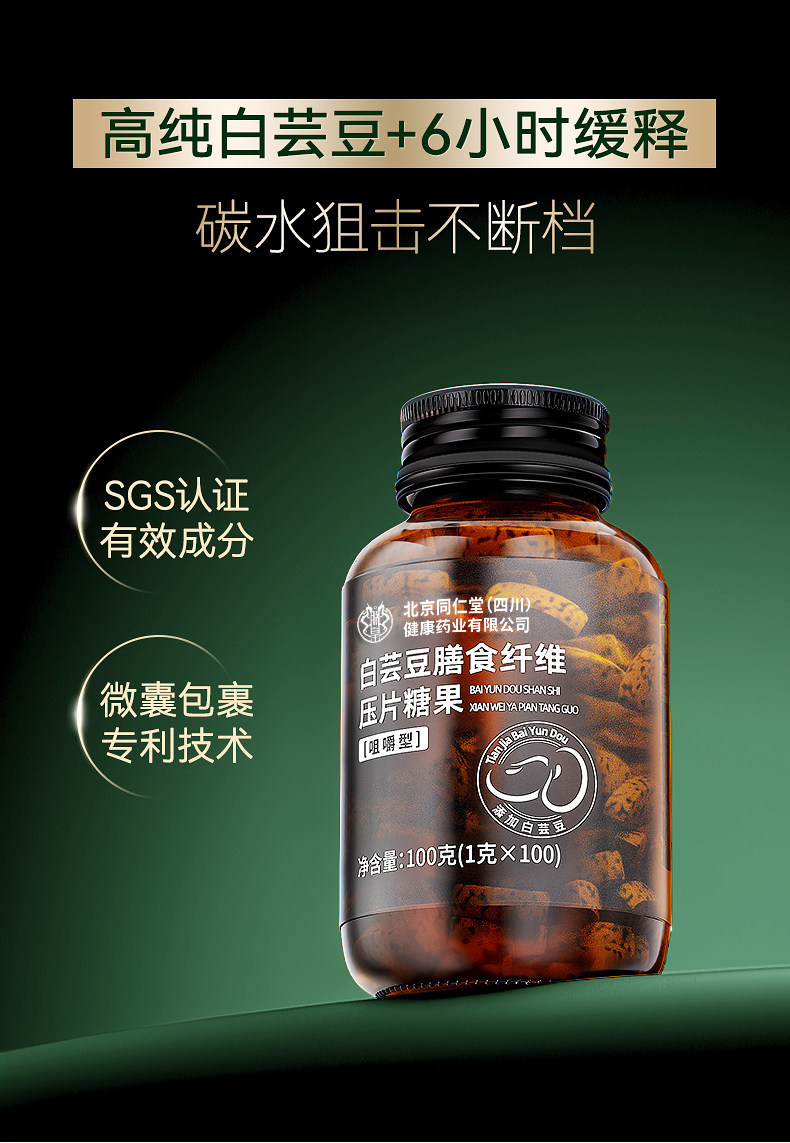 📚 同仁堂白芸豆膳食纤维压片糖果阻断糖碳油大餐救星卡路里拜拜片