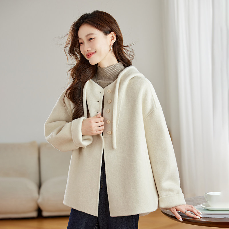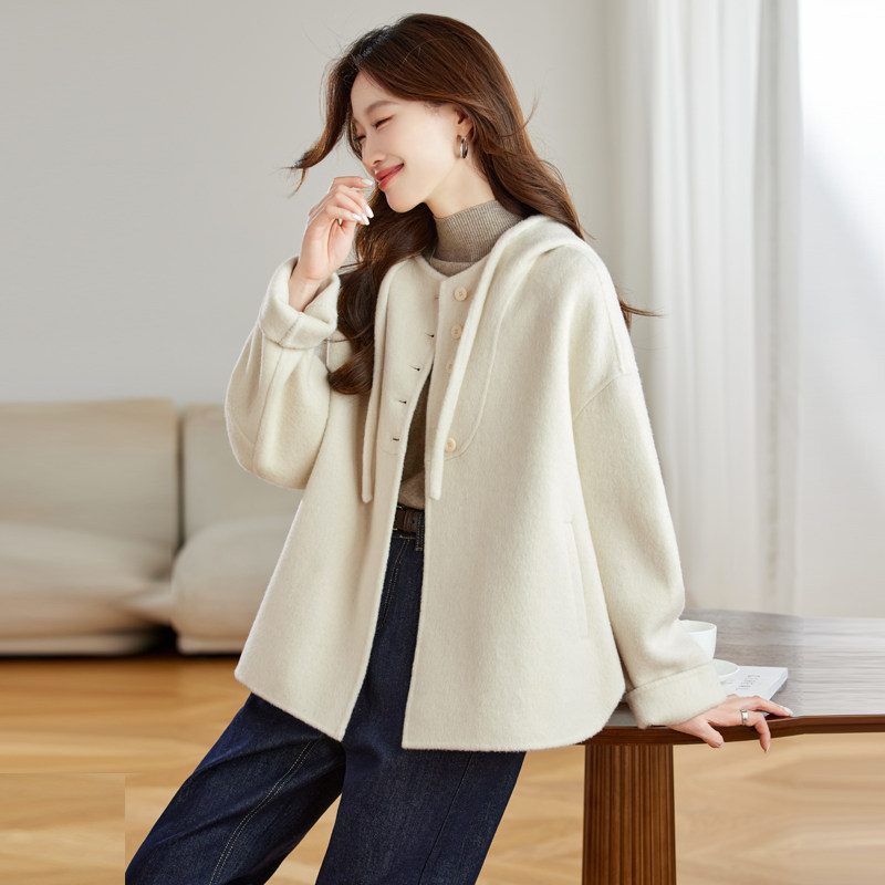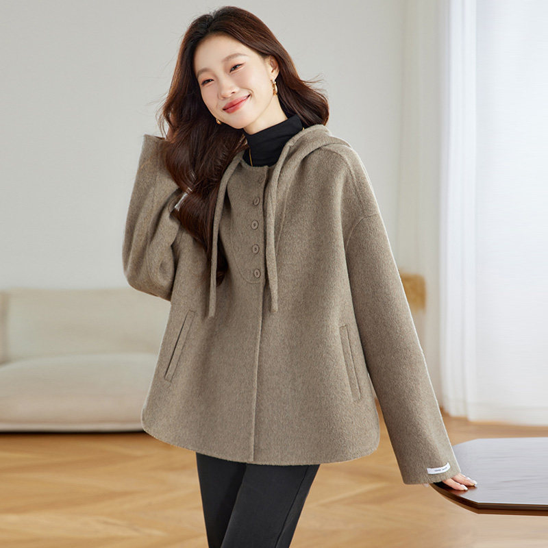 📚 今年流行小个子妮子大衣女装2026秋冬季新款韩系连帽斗篷毛呢外套