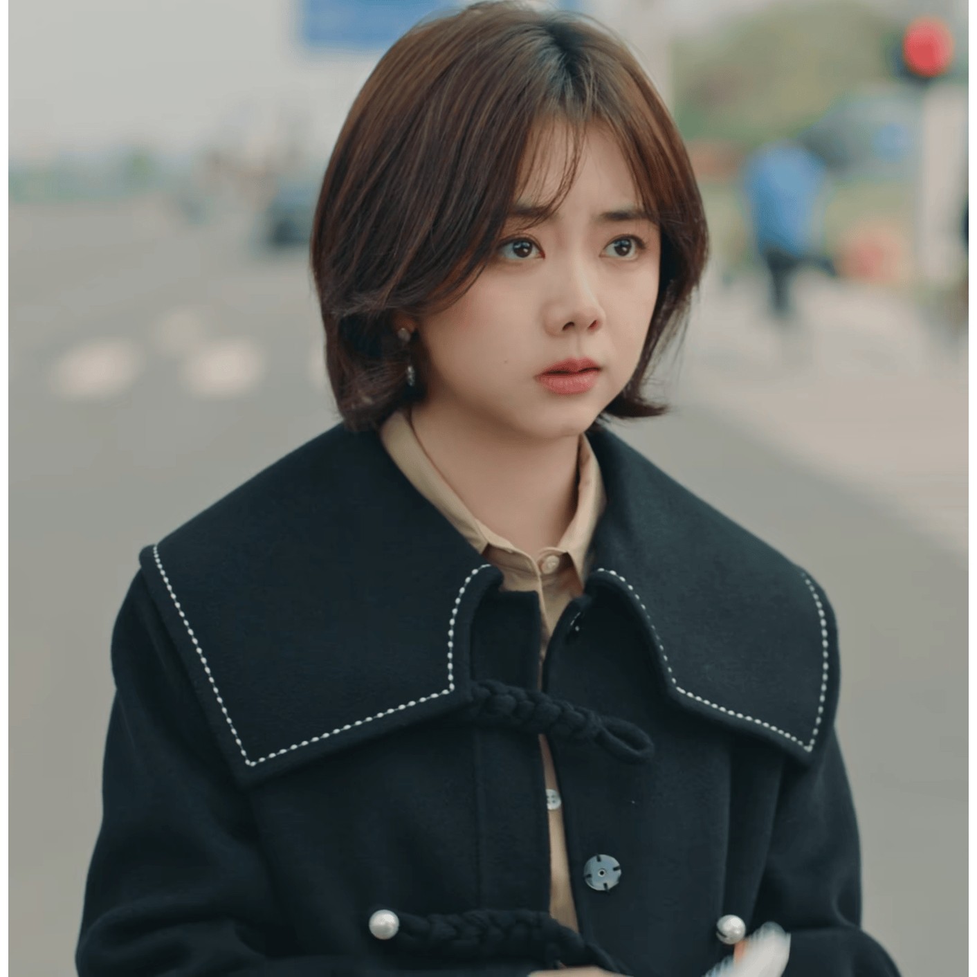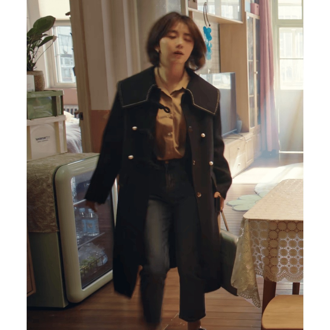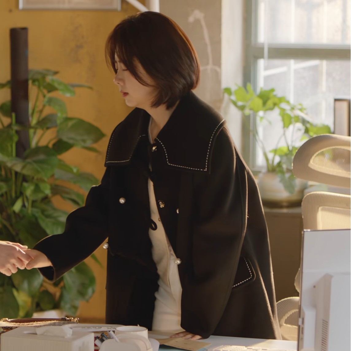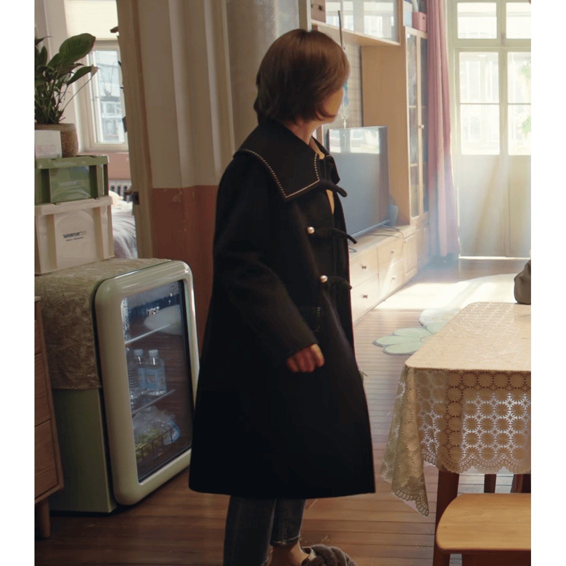 📚 尚品你比星光美丽谭松韵纪星同款衣服黑色盘口供针中长款毛呢外套