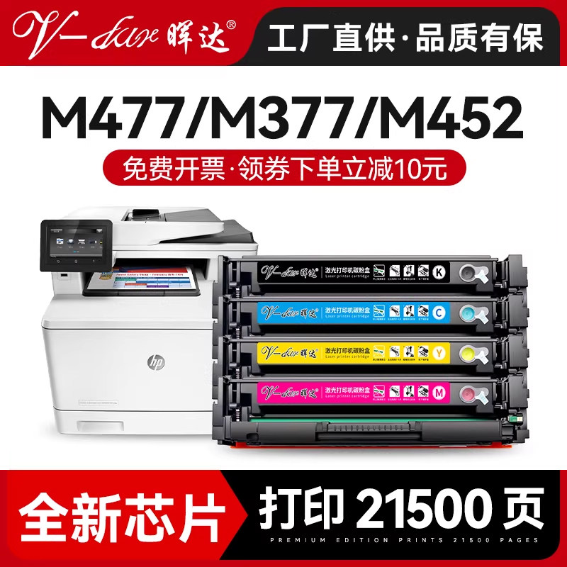 📚 晖达适用惠普M477fdw硒鼓CF410A hp410彩色激光打印机m377dw M477FNW墨粉盒M452nw m452dw m452dn粉盒477墨盒