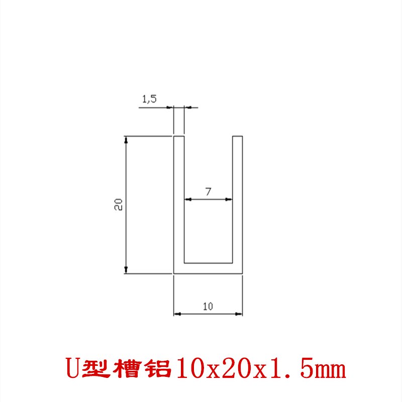 📚 铝合金u型槽10x20x1.5铝合金U型铝型材U型铝条导轨铝合金型材槽铝