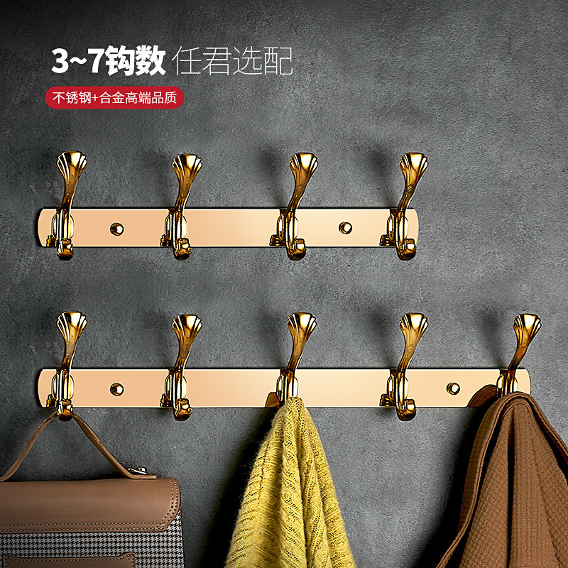 📚 不锈钢挂衣钩免打孔卧室墙壁衣帽钩玄关客厅入门后欧式排钩挂衣架
