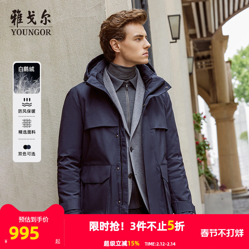 📚 雅戈尔男士羽绒服25秋冬新款鹅绒长款加厚保暖可拆卸连帽工装外套