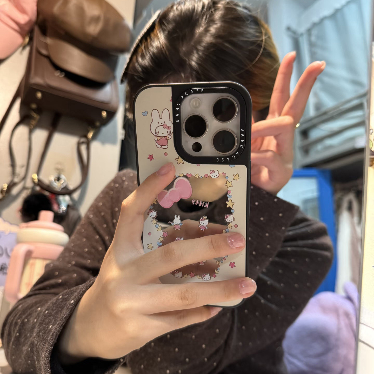 📚 补妆镜子猫咪适用苹果17手机壳iPhone17promax卡通16ProMax可爱12 13 14 15Pro镜面plus 高颜值air防摔保护壳