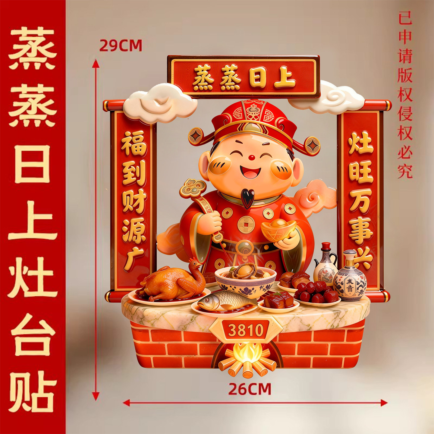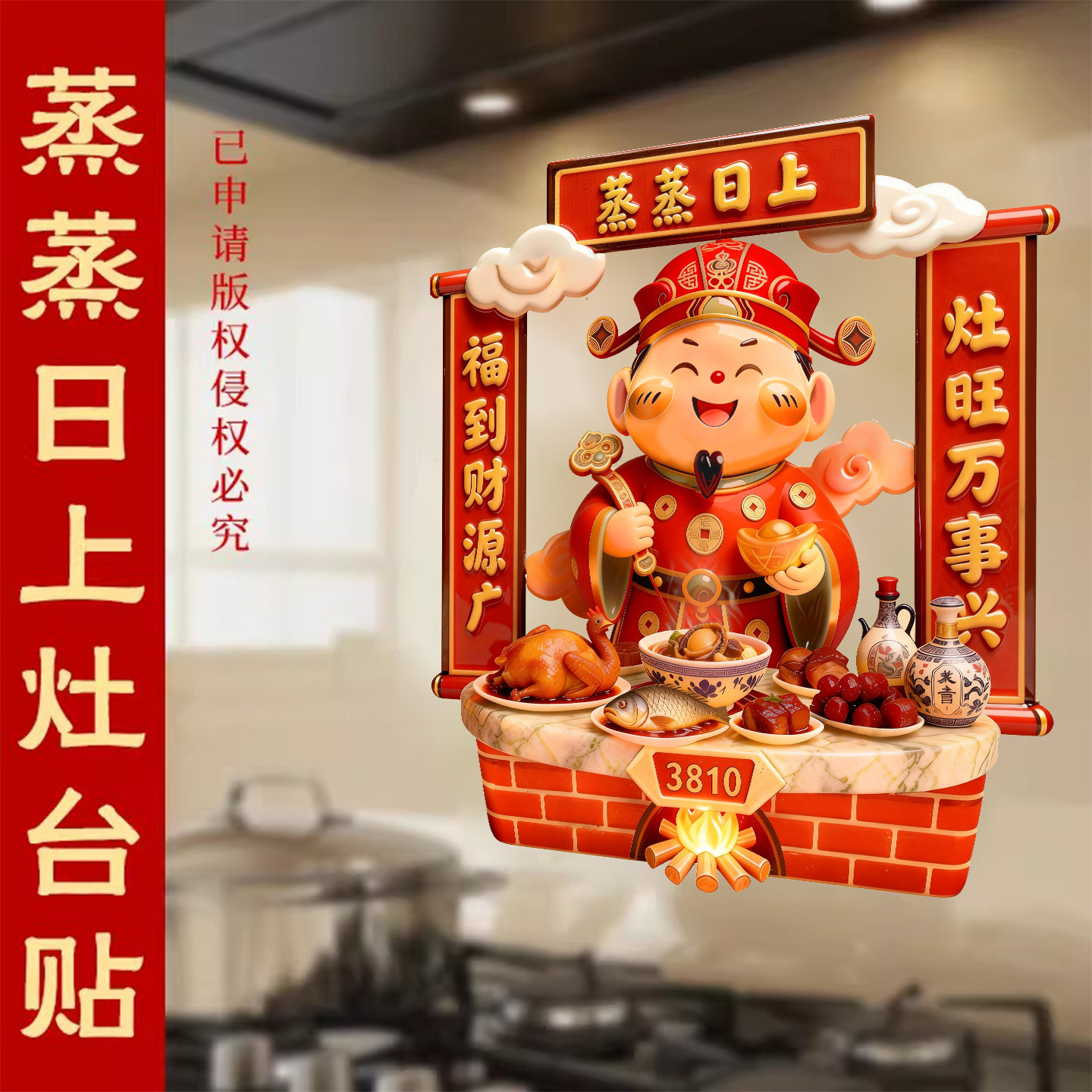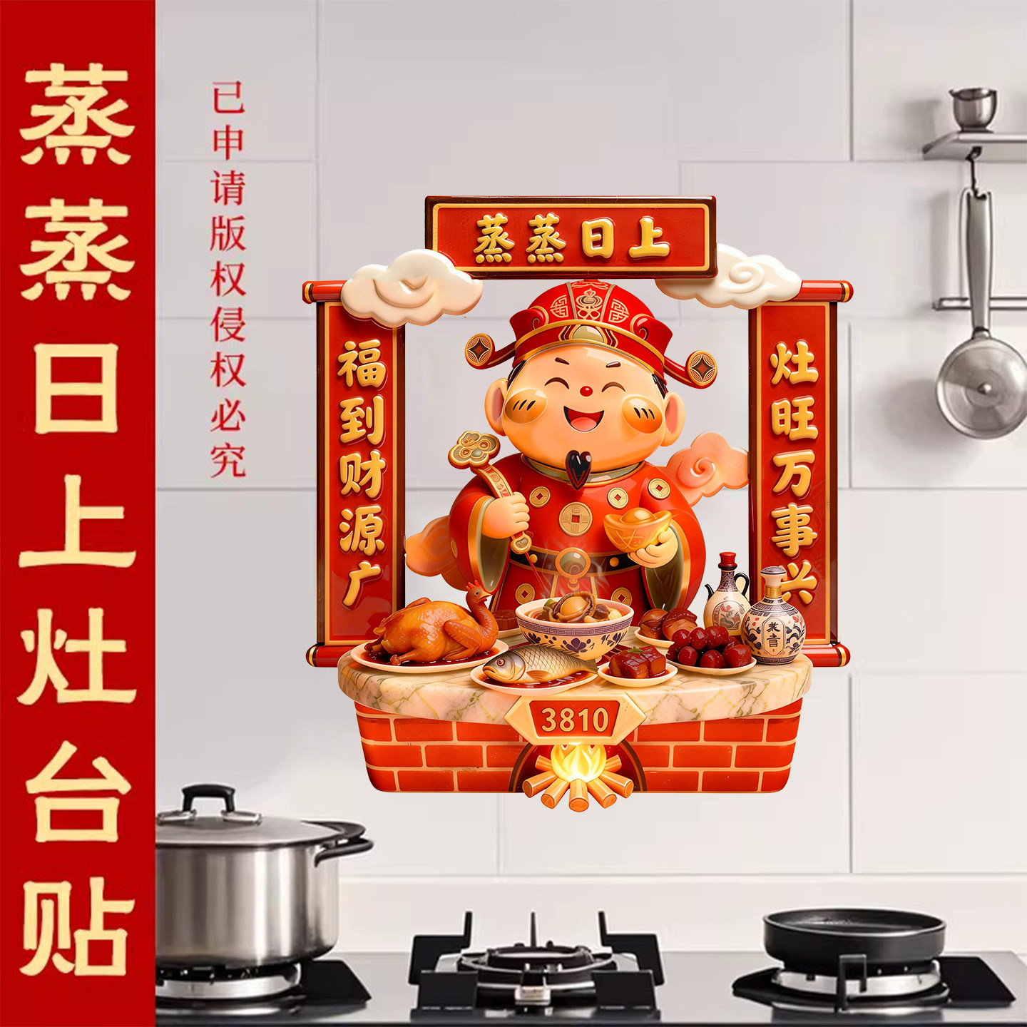 📚 灶王爷厨房贴纸2026新款蒸蒸日上防油防污灶神静电贴灶君灶台贴纸