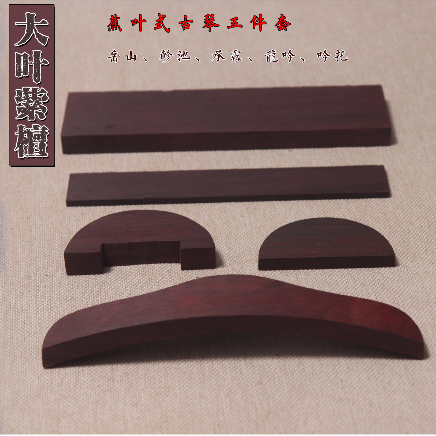 📚 蕉叶式古琴配件 岳山 整料加厚弯曲好承露 紫光檀 微凹红酸枝