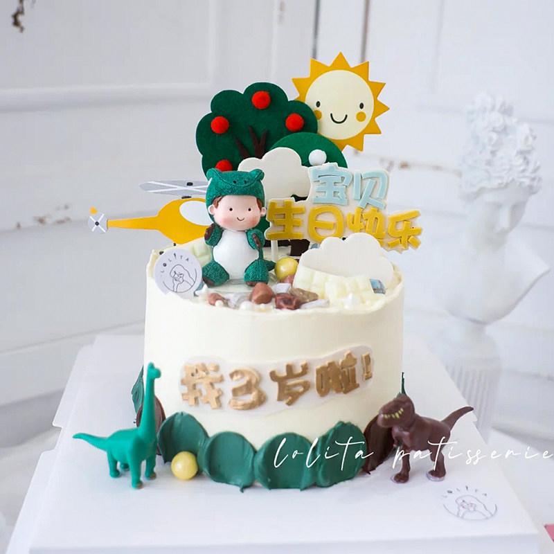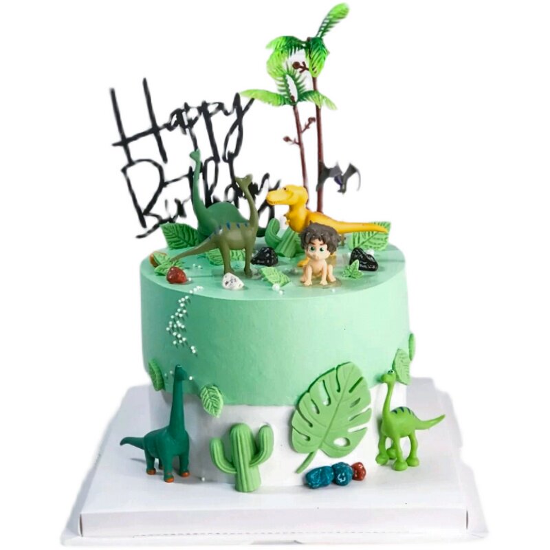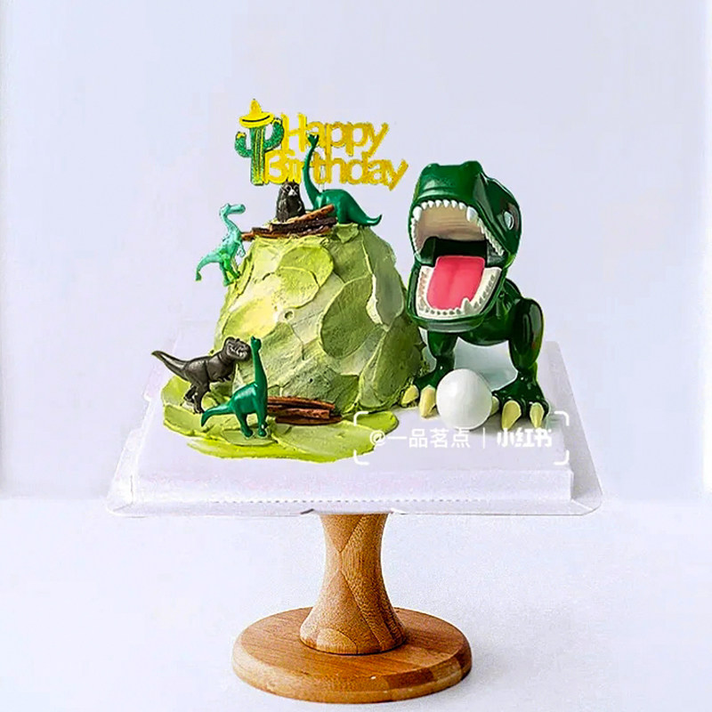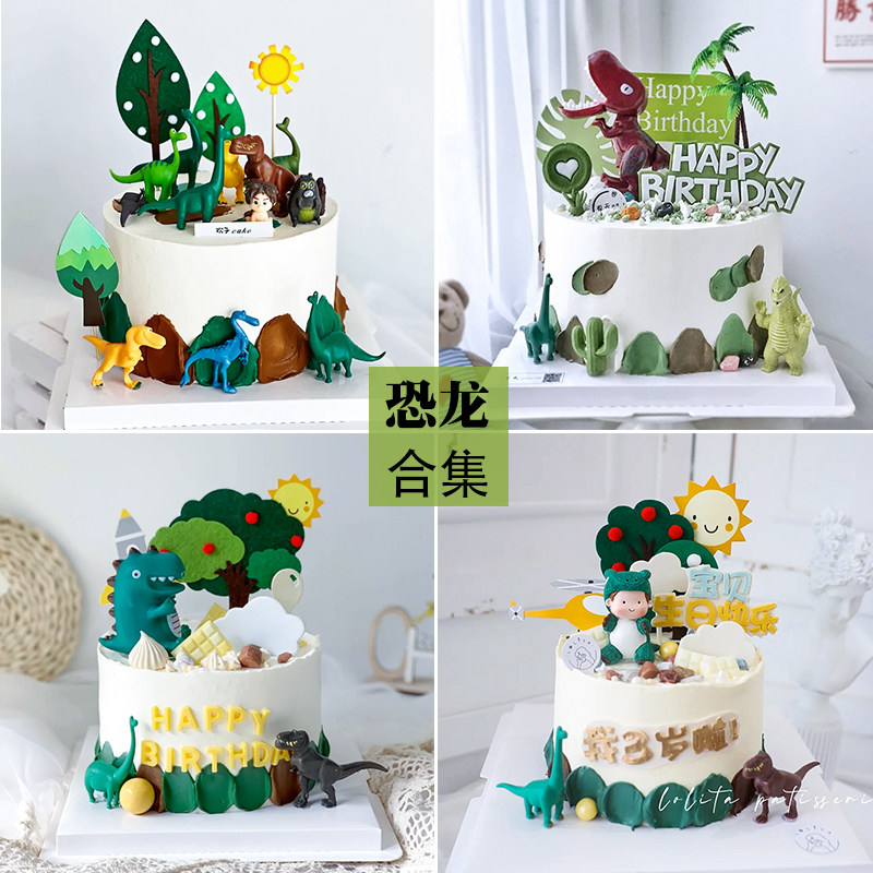 📚 恐龙蛋糕装饰摆件霸王龙男孩王子宝宝生日周岁甜品台云朵绿树插牌