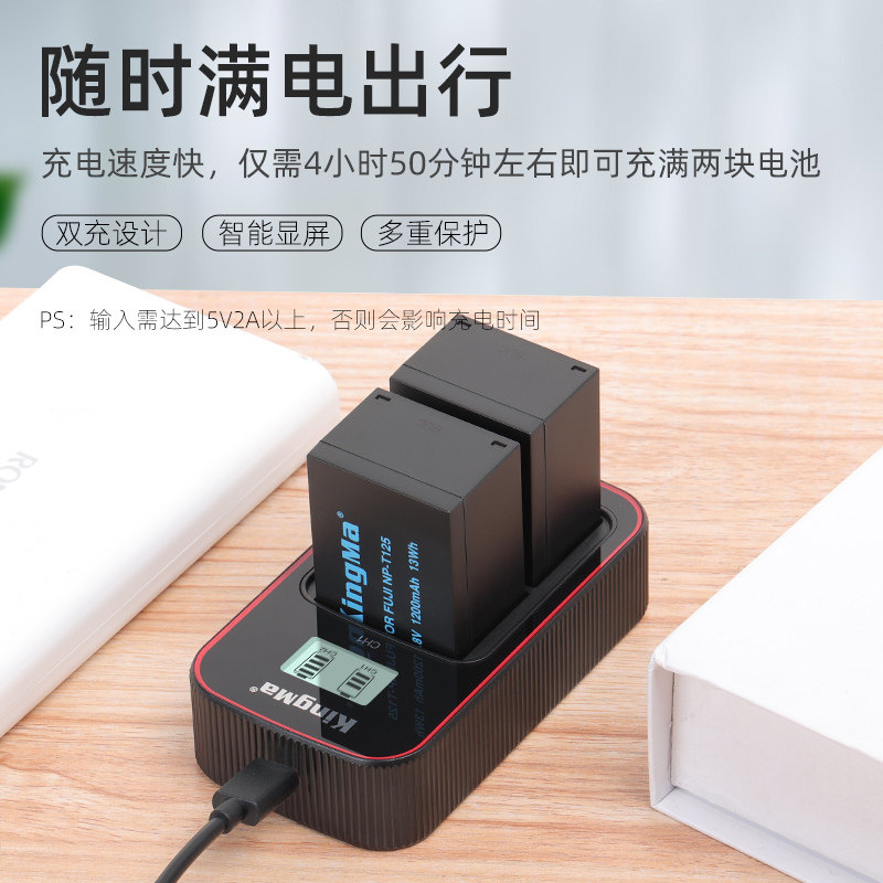 📚 劲码适用富士GFX50S相机电池单反NP-T125电池充电器 GFX50R GFX100T TYPE-C快充非原装充电器中画幅座充配件