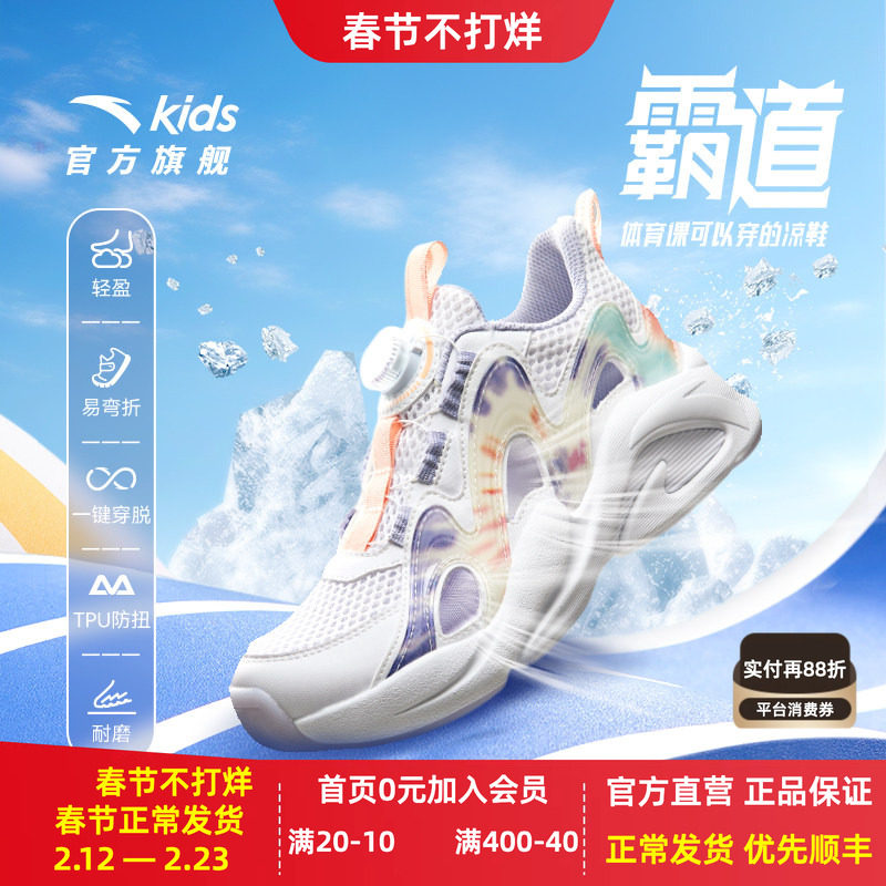 📚 安踏儿童休闲鞋2026秋季新款框子鞋女童纽扣沙滩鞋防水运动凉鞋子