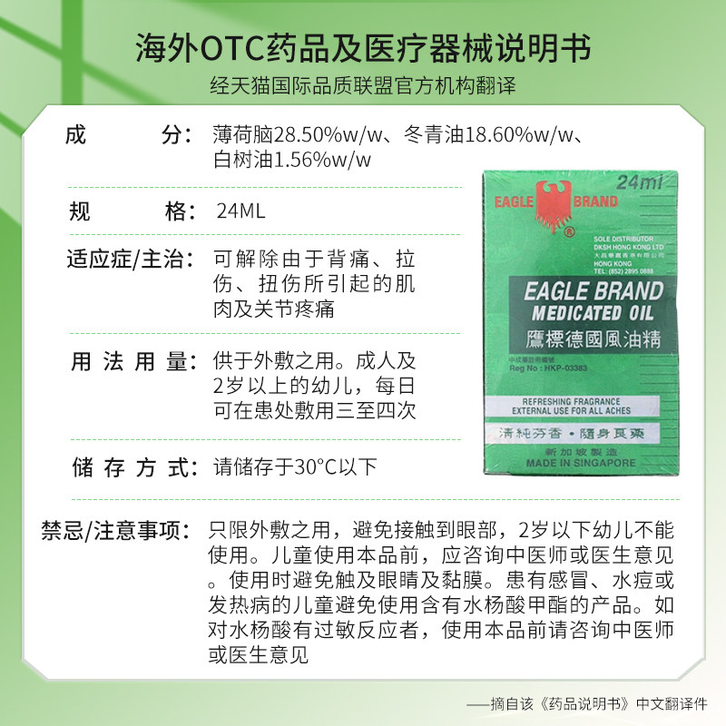 📚 香港版德国鹰标牌风油精驱蚊虫止痒缓解鼻塞肌肉酸痛清凉油驱风油