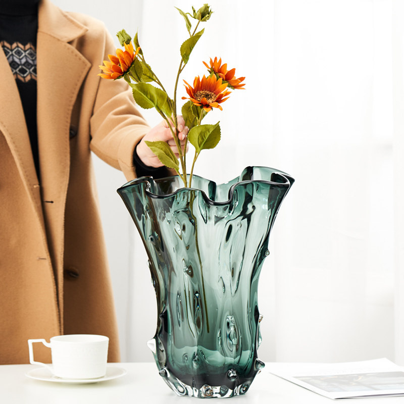 📚 特大号冷翠白菜玻璃花瓶北欧创意摆件餐桌客厅居家轻奢插花花器