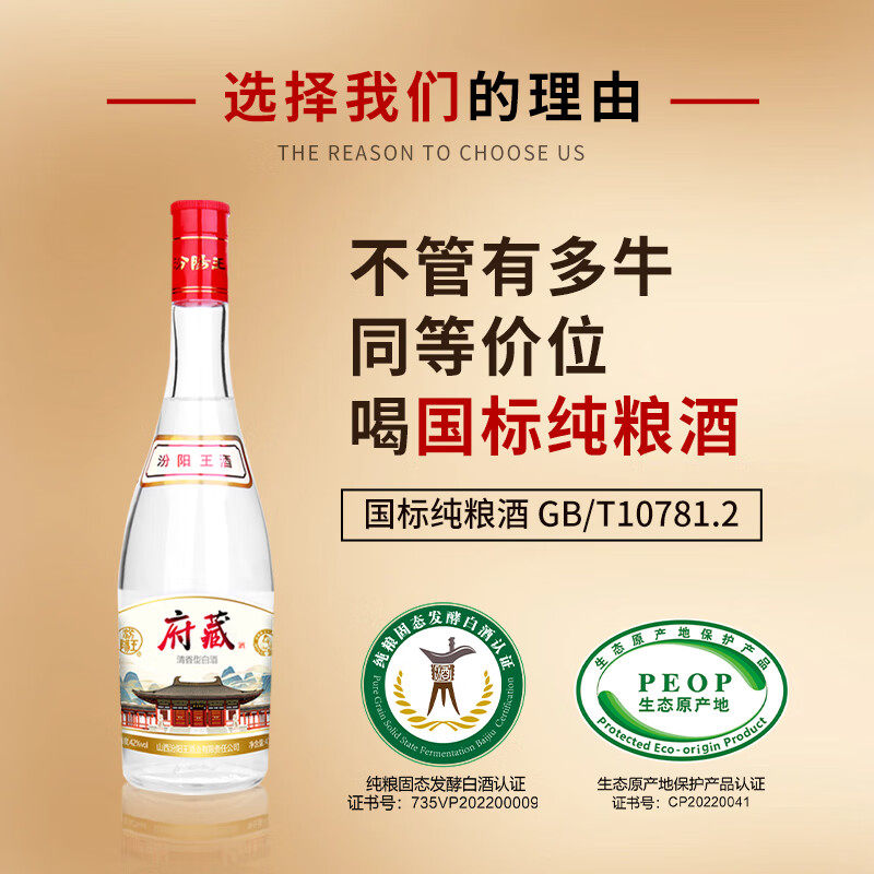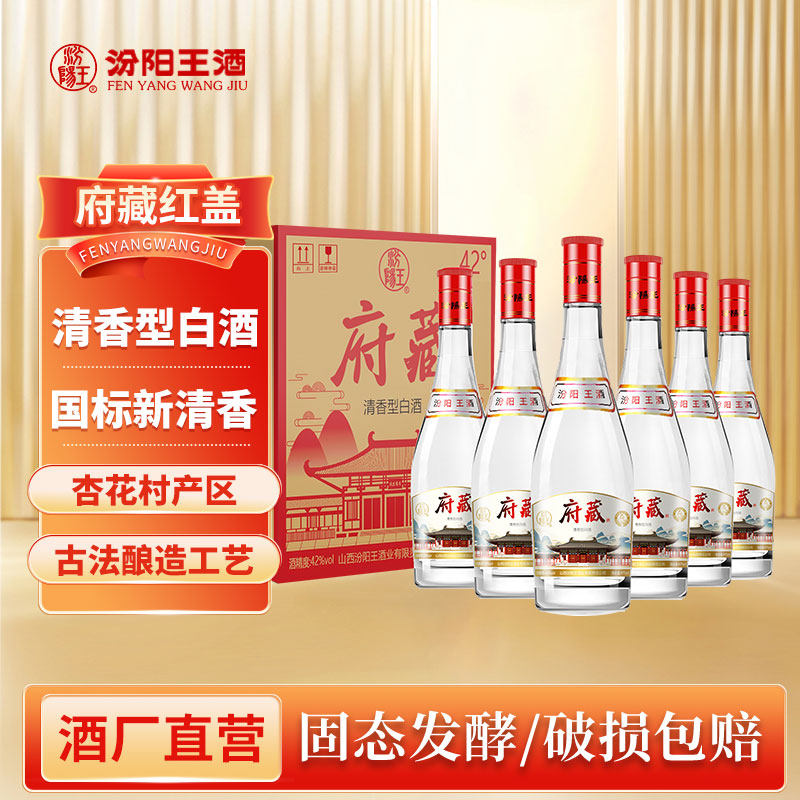 📚 汾阳王42度府藏红盖475ml*6瓶整箱清香型高档整箱装白酒纯粮食酒