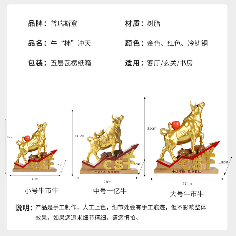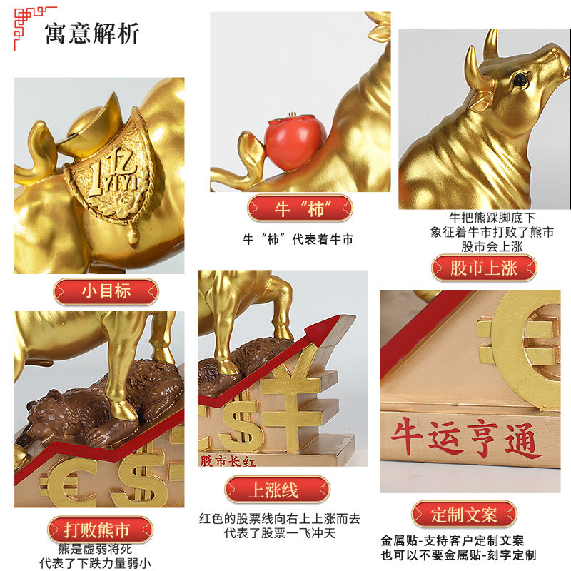 📚 原创金融牛市摆件股市华尔街黄铜牛礼品装饰品客厅办公室装饰摆件