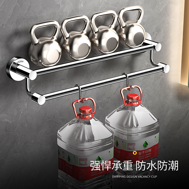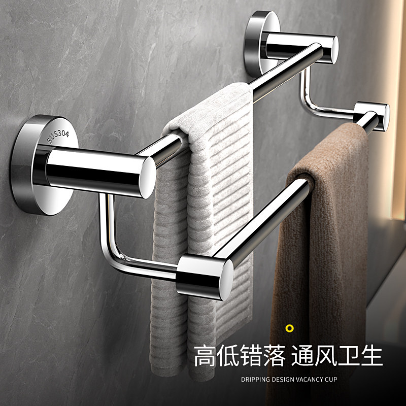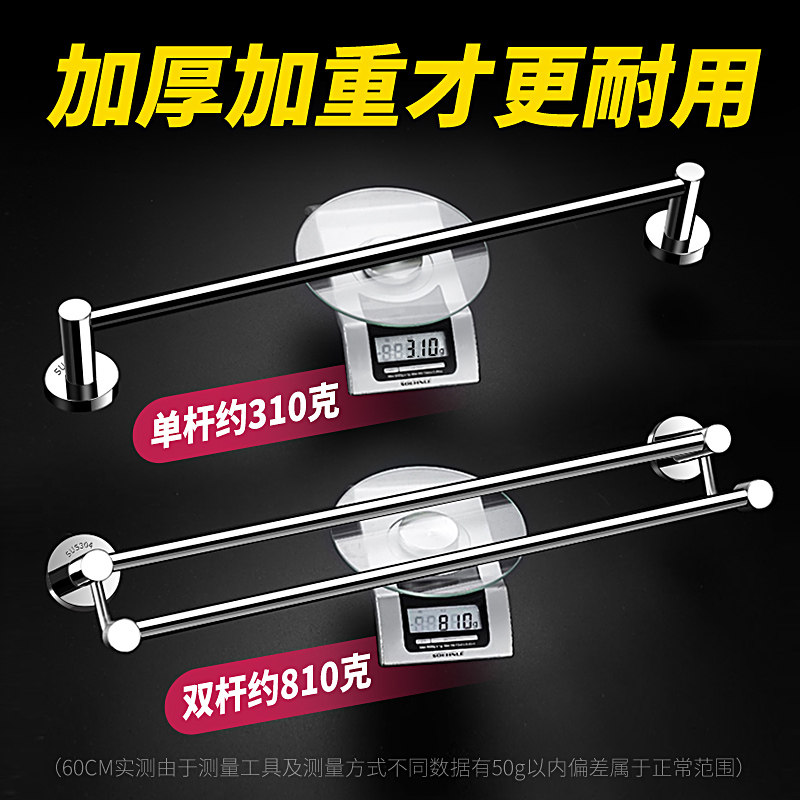 📚 毛巾架304不锈钢加厚毛巾杆单杆卫生间双杆浴巾架免打孔浴室挂架