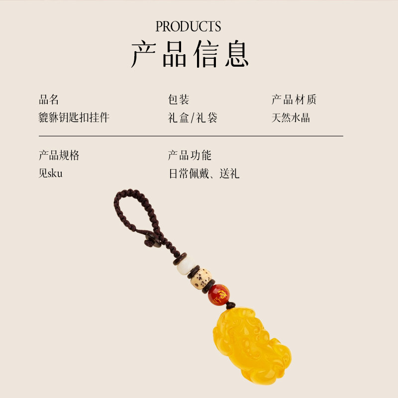 📚 遇见普陀山黄玉髓貔貅挂件男女吊坠皮丘玉石汽车钥匙扣双貔貅挂件