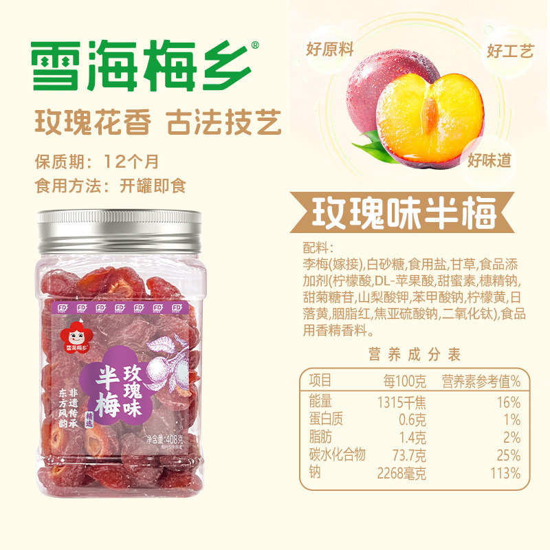📚 雪海梅乡玫瑰味话梅果脯有核罐装入口肉厚健康解馋回味无穷零食