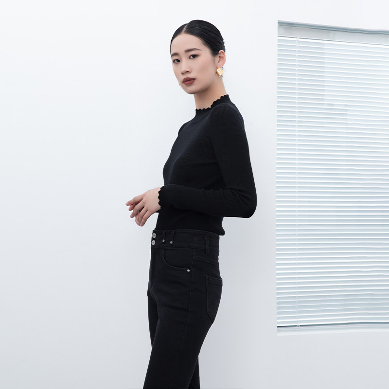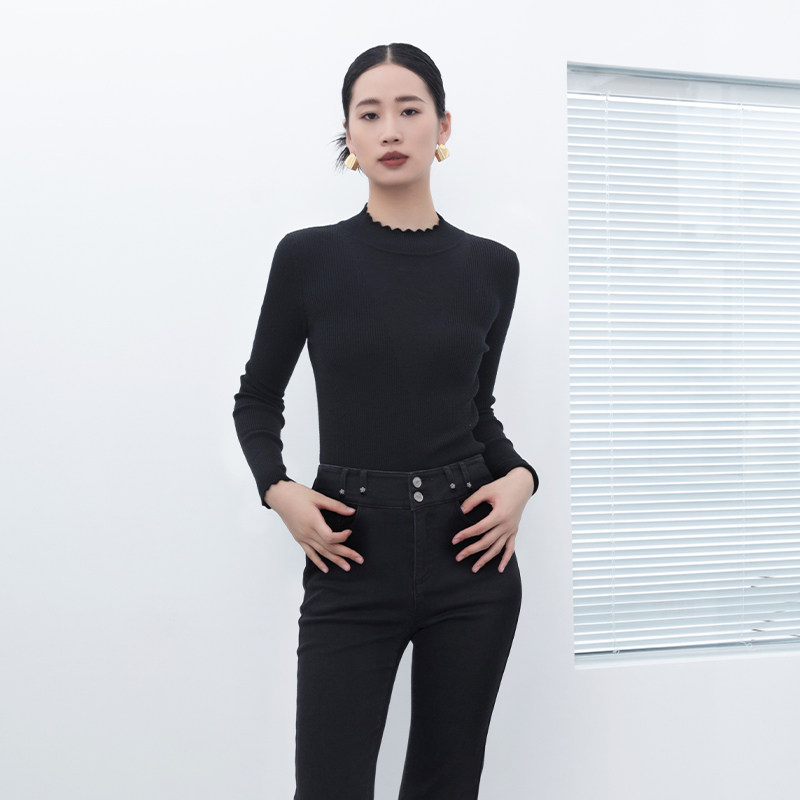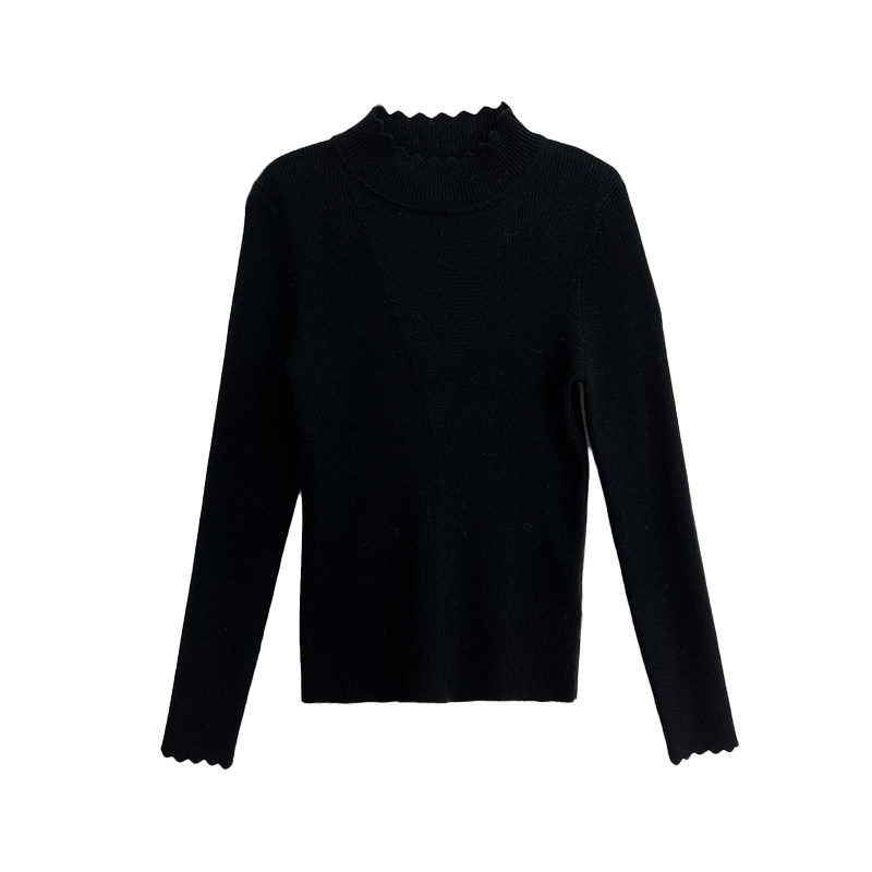 📚 诗梦女装秋冬新款羊毛针织衫花边领修身打底衫显瘦气质简约百搭