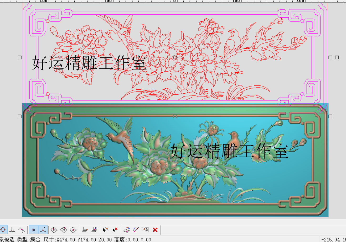 📚 檀雕花鸟精雕图围板花开富贵电脑雕刻图浮雕图牡丹鸟横板474-174
