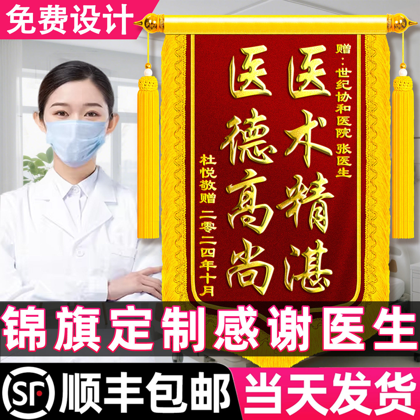 📚 锦旗定制感谢医生旌旗订做赠送医院妇产医护人员护士中医针灸牙科骨科产科儿科口腔牙医仁心高档定做刺绣制作