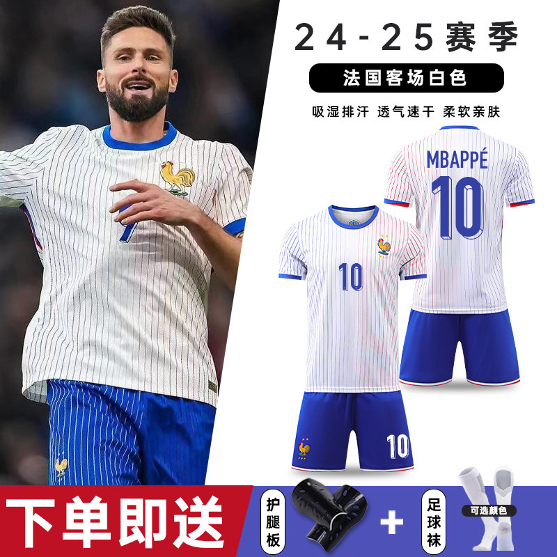 📚 2024欧洲杯法国队球衣10号姆巴佩吉鲁足球服比赛训练服男儿童套装