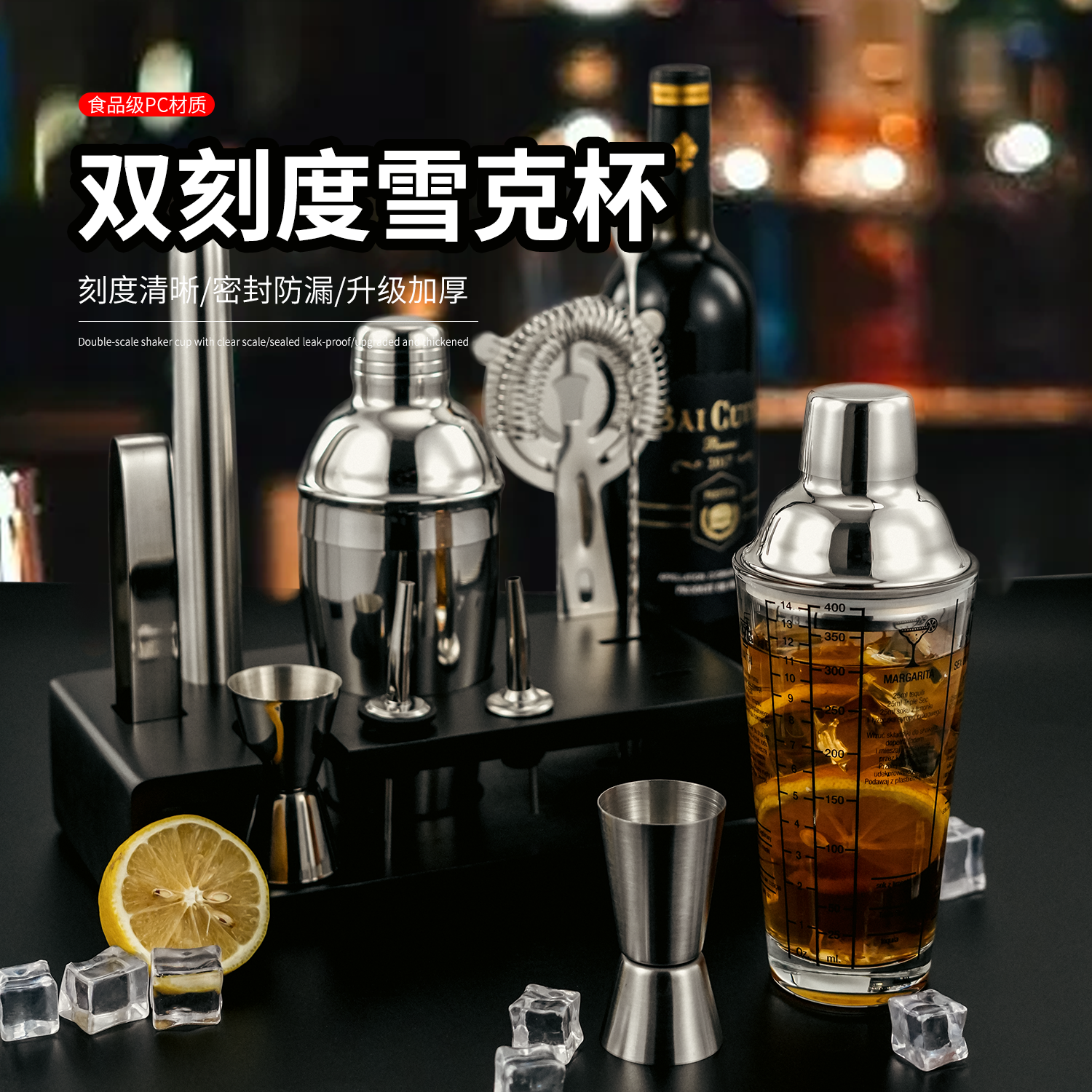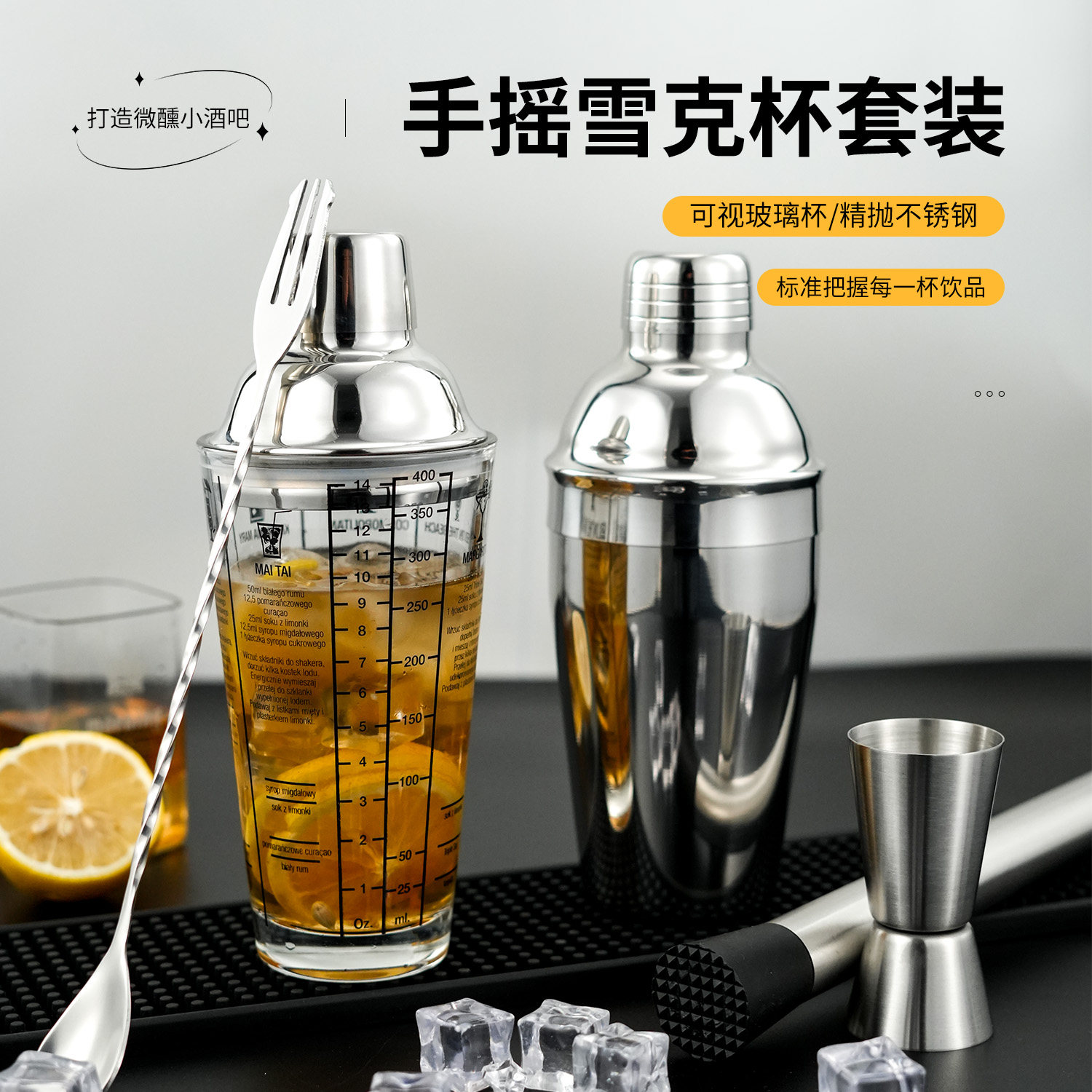 📚 不锈钢雪克杯手摇调酒器套装奶茶店专用手打柠檬茶摇酒壶食品级