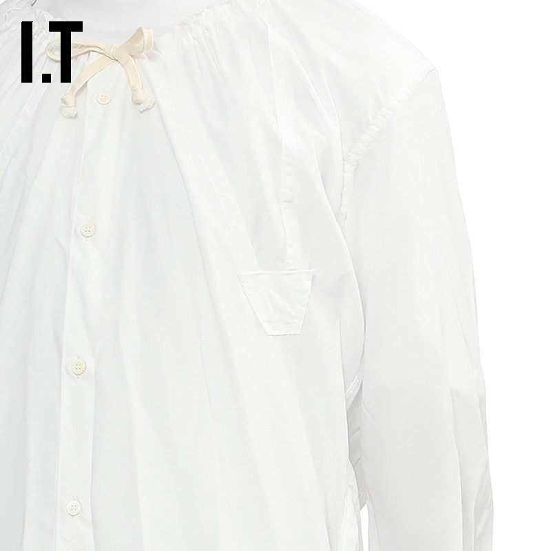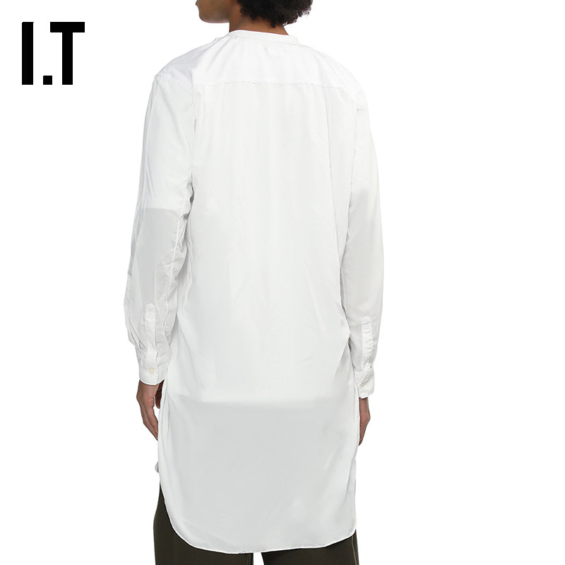 📚 IT CDG COMME des GARCONS HOMME PLUS男中长款无领微透长袖上衣