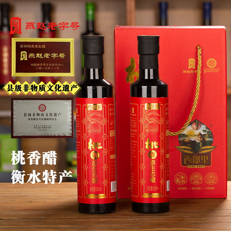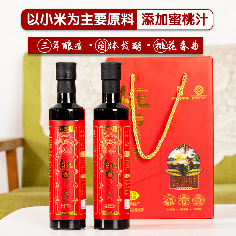 📚 西郎里原生态桃香醋纯粮酿造500ml*2瓶礼盒装甜口陈醋
