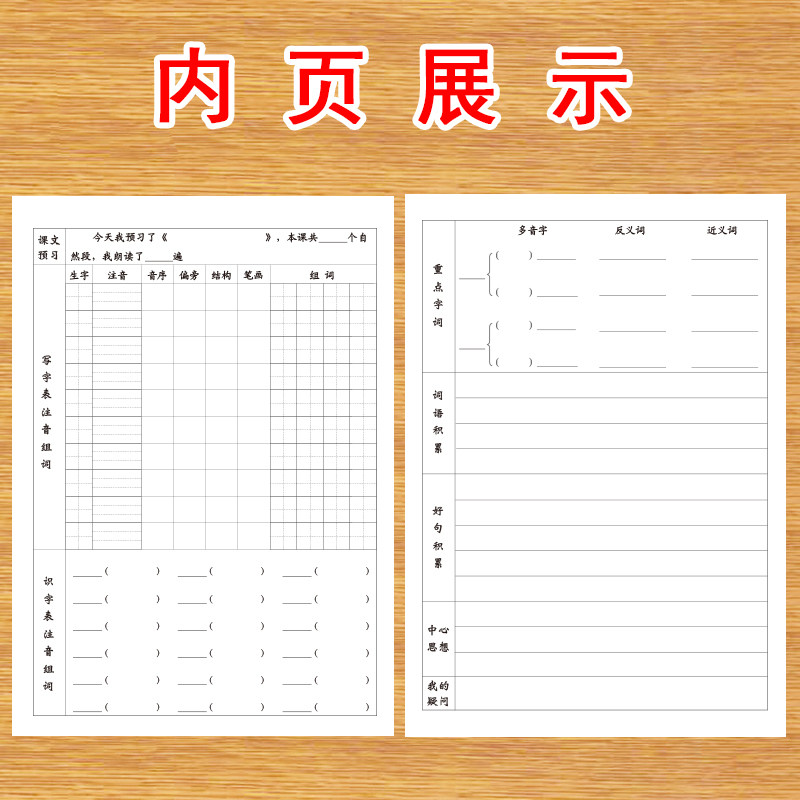📚 小学语文课前预习本一年级二年级三年级四年级五年级六年级阅读基础知识字词注音组词造句多音字好词好句积累