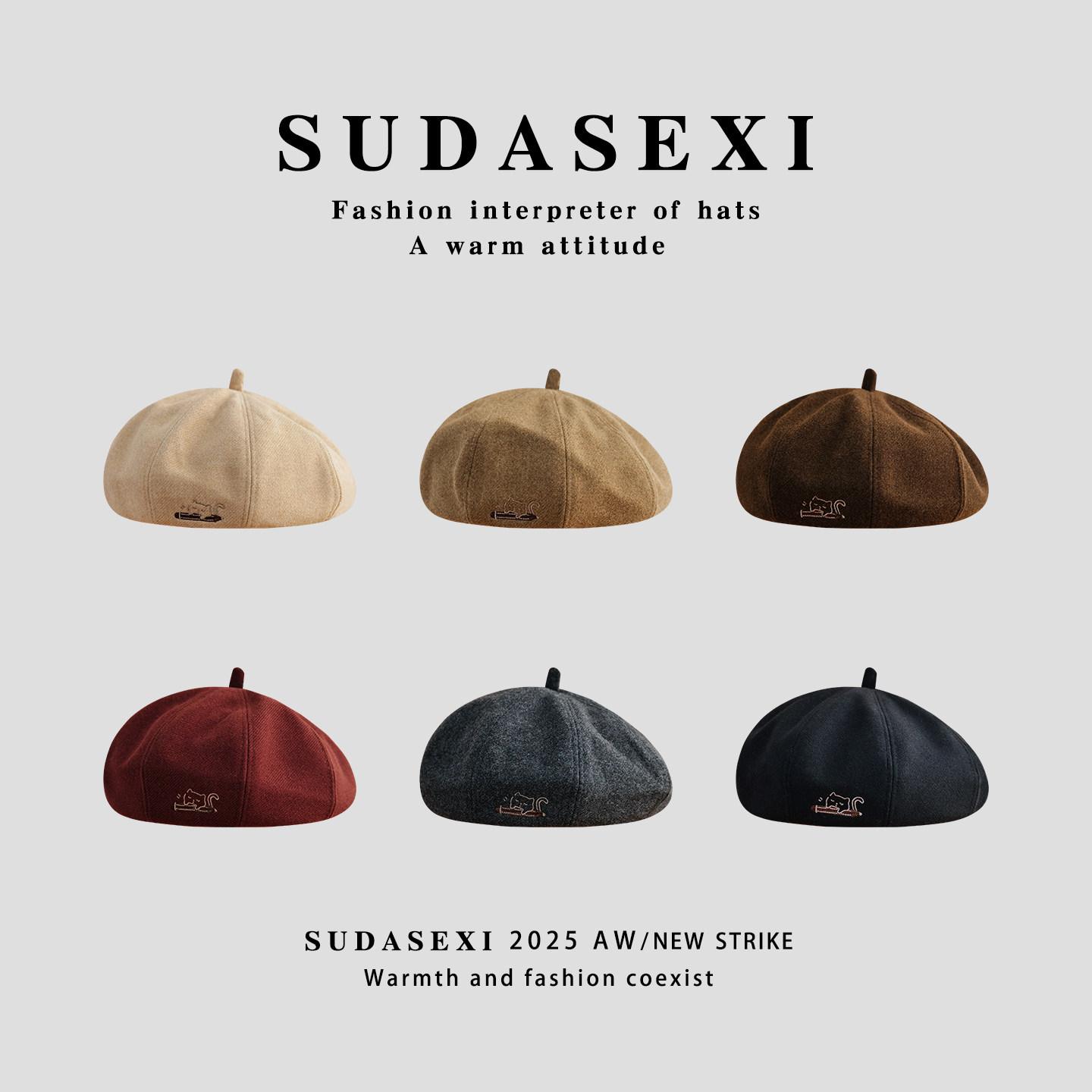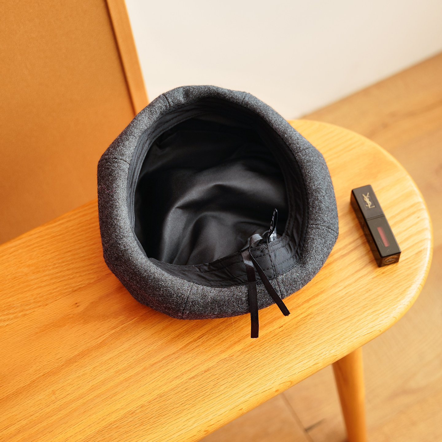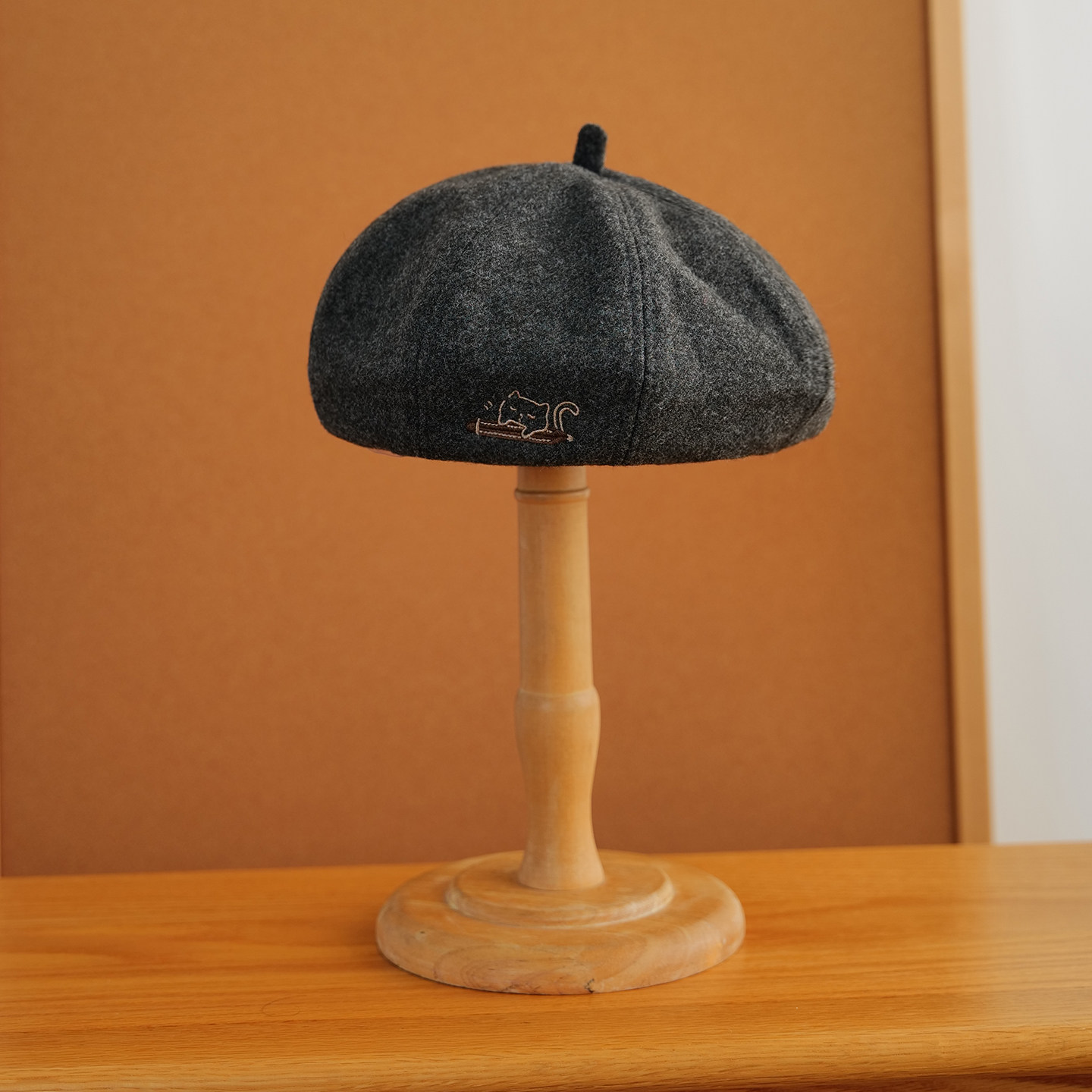 📚 素单舍西“瞌睡小猫”灰色日系贝雷帽女秋冬显脸小文艺画家南瓜帽