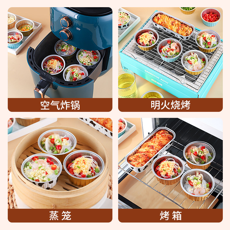 📚 空气炸锅锡纸碗可重复使用烘焙家用烤箱布丁杯蛋挞蛋糕杯铝箔碗