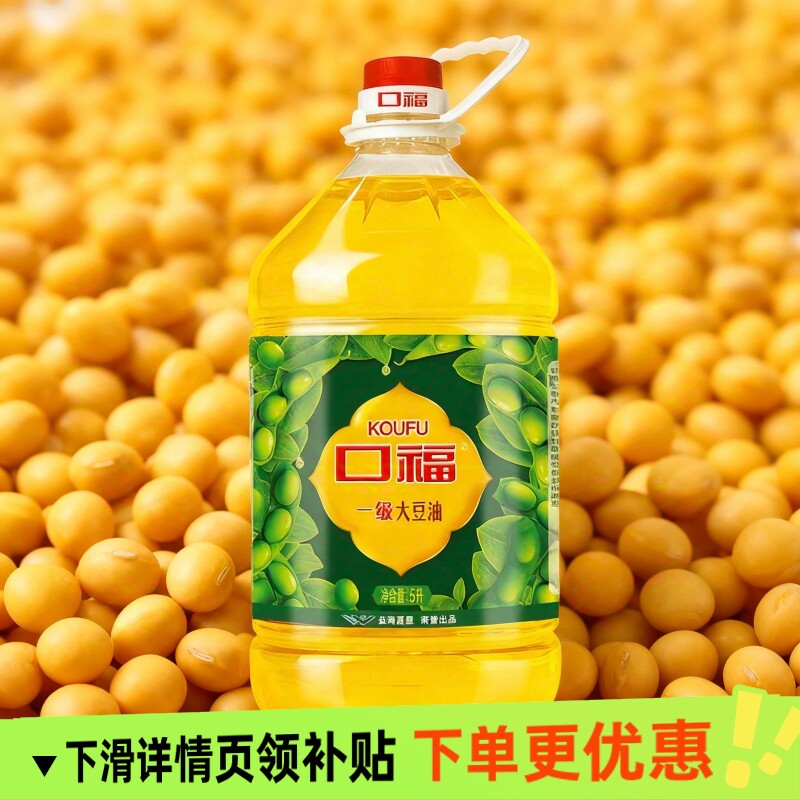 📚 【口福】一级大豆油5L*4桶整箱装食用油烹饪煎炸炒菜家用商用