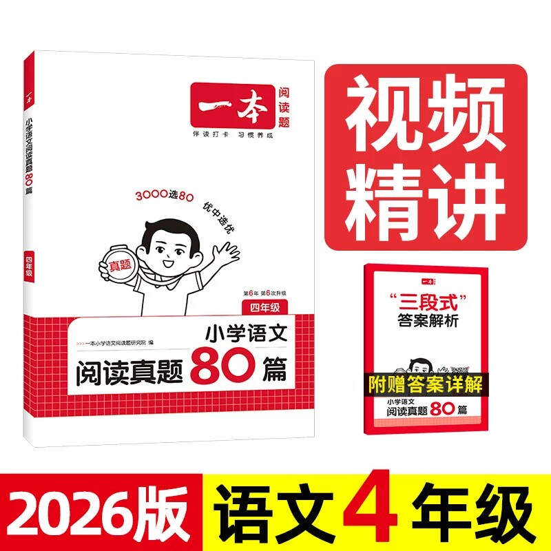 📚 2026新版一本语文阅读真题80篇四年级人教版 三段式答案解析视频精讲 第6版最新版 小学生4年级上册下册阅读理解真题训练专项训练