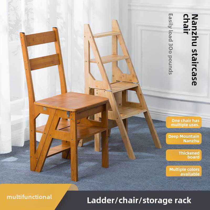 📚 实木加厚多功能折叠梯椅室内移动爬梯两用四步梯凳爬梯