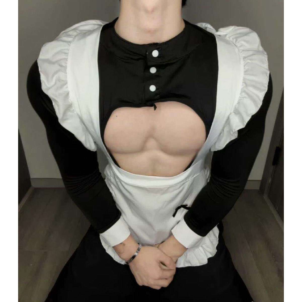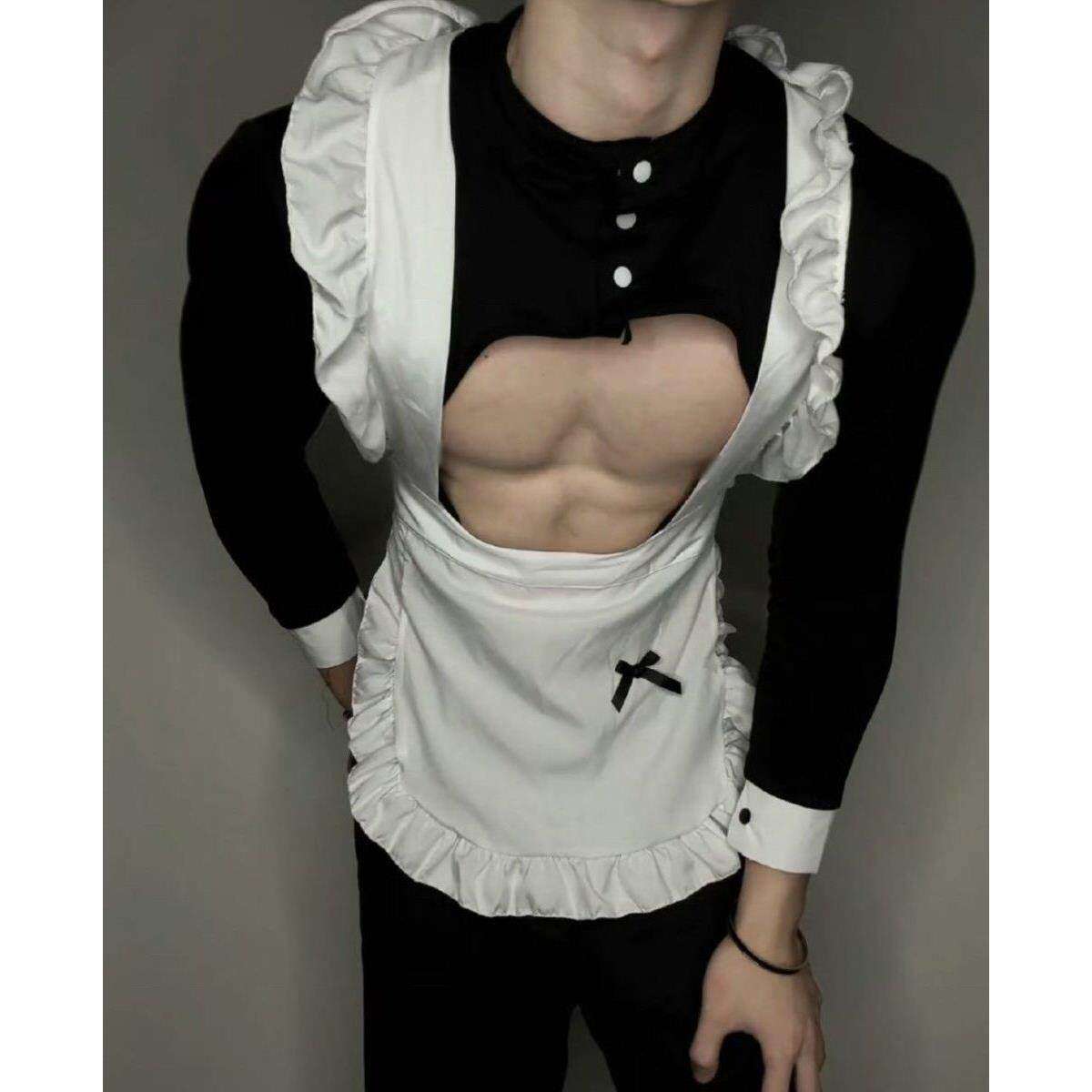 📚 镂空三件套男仆装性感二次元可爱男佣人cos制服健身装肚兜男士