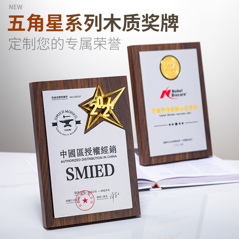 📚 木质牌匾奖牌定制战略合作伙伴优秀团队加盟代理荣誉证书定做印字